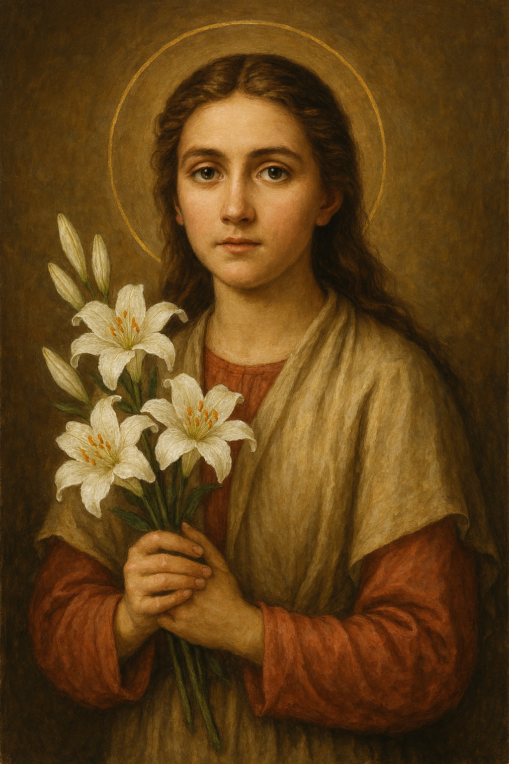 Known as the “The Little Saint of Great Mercy,” Maria Goretti was a young Italian girl who came from a humble and poor farming family. After the early death of her father, her family faced many challenges and had to live with another family, the Serenellis, in order to make ends meet. Maria was deeply in love with Christ and eagerly looked forward to receiving her First Communion. On June 16, 1901 at the age of ten she received her First Communion. Her profound devotion to her faith inspired her daily life, as she remained committed to living with purity and holiness in every action she took. Sadly, just one year later, she was violently attacked by the Serenelli family's son, Alessandro, who attempted to sexually assault her. Maria fiercely resisted his advances, "No! It is a sin! God does not want it!". In a moment of rage and frustration, Alessandro stabbed her multiple times, leaving her gravely wounded.